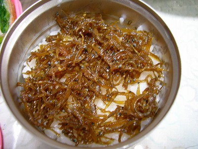 昨日、ポテトサラダを作った時の炒めたまねぎを少し取り分けておきました。